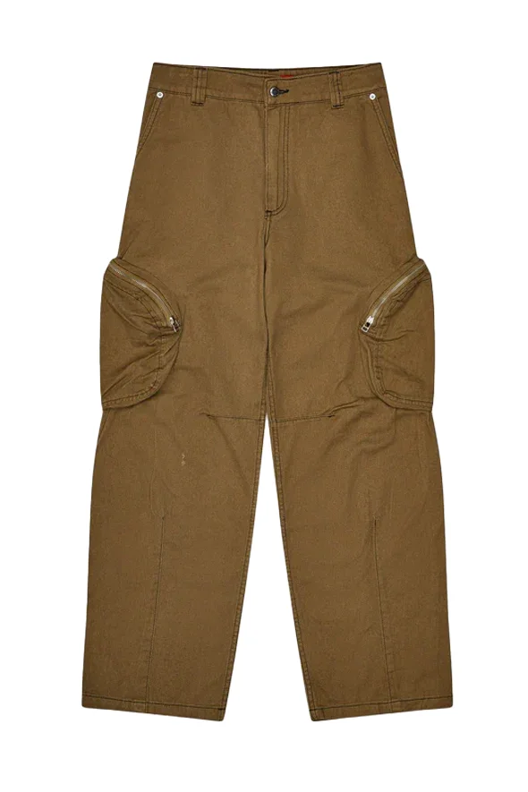 Eckhaus Latta Cargo Pant Earth features utility detailing throughout, including cargo pockets with metal zippers. Finished with a circular patch at the back and signature EL pockets. DETAILS Low-rise Straight leg Utility detailing throughout Cargo pockets with metal zippers Circular patch at back Signature EL pockets Material: 100% Cotton Made in USA Product codes: - SKU: ESSX/ECK/AW25/1410ELPF25E/Natrual/28 - UPC: 111001368683