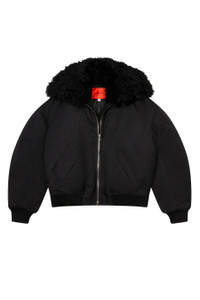 Eckhaus Latta Zip Up Bomber Asphalt DETAILS Oversized fit Cropped silhouette Shearling collar Zip front with angled welt pockets Ribbed cuffs and hem Fully lined Material: Shell: 51% Recycled Nylon, 49% Nylon Collar: 100% Shearling Lining: 100% Acetate Made in Peru Product codes: - SKU: ESSX/ECK/AW25/1411ELPF25A/Black/S - UPC: 111001368911