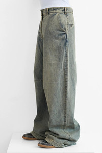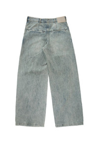 The Entire Studios Washed Denim Jeans in heavyweight denim featuring a relaxed fit with a wide leg, side pockets, back welt pockets, darts at the knee, and logo patch at the rear. Model is 5'10 and wears size medium DETAILS - Heavyweight denim - Relaxed-fit - Wide-leg - Darts at knees - Side pockets - Dual back welt pockets - Belt loops - Logo patch at back Sizing: - True to size Material: Cotton Made in China Product codes: - SKU: ESSX/ENT/AW25/ESWS2511006SW/Blue/S - UPC: 810151354781