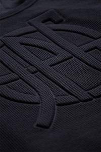 Jean Paul Gaultier oversized hoodie featuring double layered construction with contrasting jersey sleeves, a waffled overlayer with striking logo embossed at chest, drawstring hood, knit cuffs, and signature locker loop at back collar. DETAILS - Layered Construction - Adjsutable Drawstring Hood - Logo Embossed at Chest - Ribbed-Knit Cuffs - Signature Locker Loop at Back Material: 100% Cotton Made in Portugal Product codes: - SKU: ESSX/JPG/PRESS25/2533FSW050EJ07600/black/S - UPC: 3666259901016
