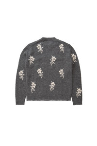 Jil Sander Alpaca Floral Intarsia Crewneck Sweater Moonless Night