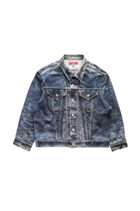 The Eye Junya Watanabe X Levis Denim Jacket in an updated treated fabrication featuring a trompe l'oeil faded and whiskered print, a standard fit, chest pockets, adjustable tabs at the back waistband, and silver-tone hardware. DETAILS - Classic silhoutte - Faded + distressed print - Chest pockets - Adjustable tabs at rear - Silver-tone hardware Made in collaboration with Levis Sizing: - True to size Material: Cotton Made in Japan Product codes: - SKU: ESSX/JUN/SS25/WOJ9111001/Blue/XS - UPC: 3607936303501