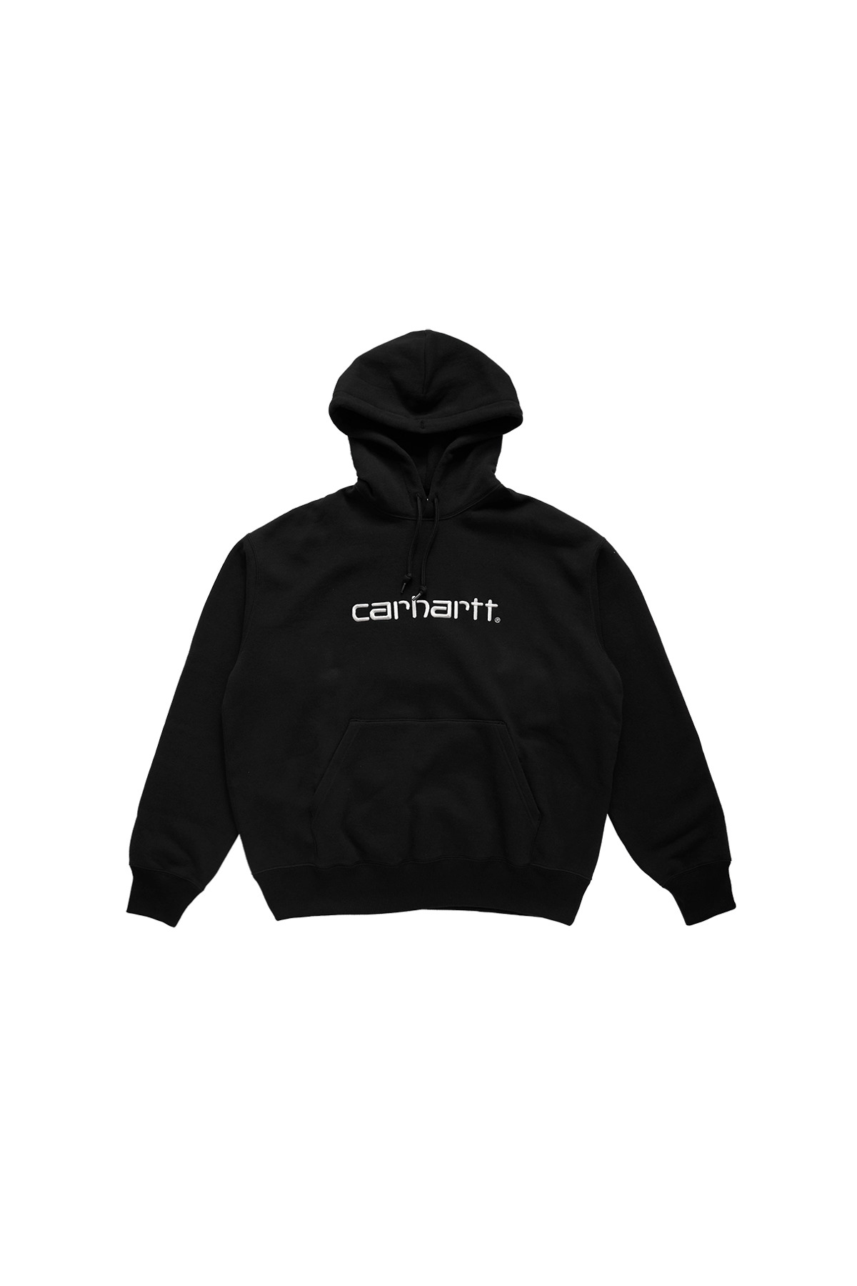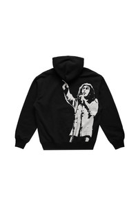 The Junya Watanabe X Carhartt Hoodie featuring a relaxed fit, drawstring hood, dropped shoulders, logo embroidered at the chest, kangaroo pocket, and a graphic Bob Marley print at the back. DETAILS - Relaxed fit - Hood with drawstring - Dropped shoulders - Long sleeves - Logo embroidery at chest - Kangaroo pocket - Print at back - Ribbed trims Made in collaboration with Carhartt WIP Sizing: - True to size Material: Cotton Made in Japan Product codes: - SKU: ESSX/JUN/SS25/WOT9011001/Black/S - UPC: 3607936308698