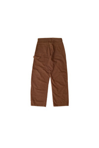The JW ANDERSON Aged Twisted Workwear Jeans are wide-leg garment-washed non-stretch asymmetrical relaxed-fit low-rise jeans with fading and whiskering throughout, three pockets, hammer loop, logo-engraved hardware, embroidered front logo, and leather logo patch at front. DETAILS - Garment-washed - Wide-leg - Non-stretch denim - Asymmetrical styling - Relaxed-fit - Low-rise - Fading and whiskering throughout - Three pockets - Hammer loop - Logo-engraved hardware - Embroidered front logo - Leather logo patch at front Sizing: - True to size Material: Cotton Made in Italy Product codes: - SKU: ESSX/JWA/SS25/DT0115PG1756405/Brown/28 - UPC: 5057543604818