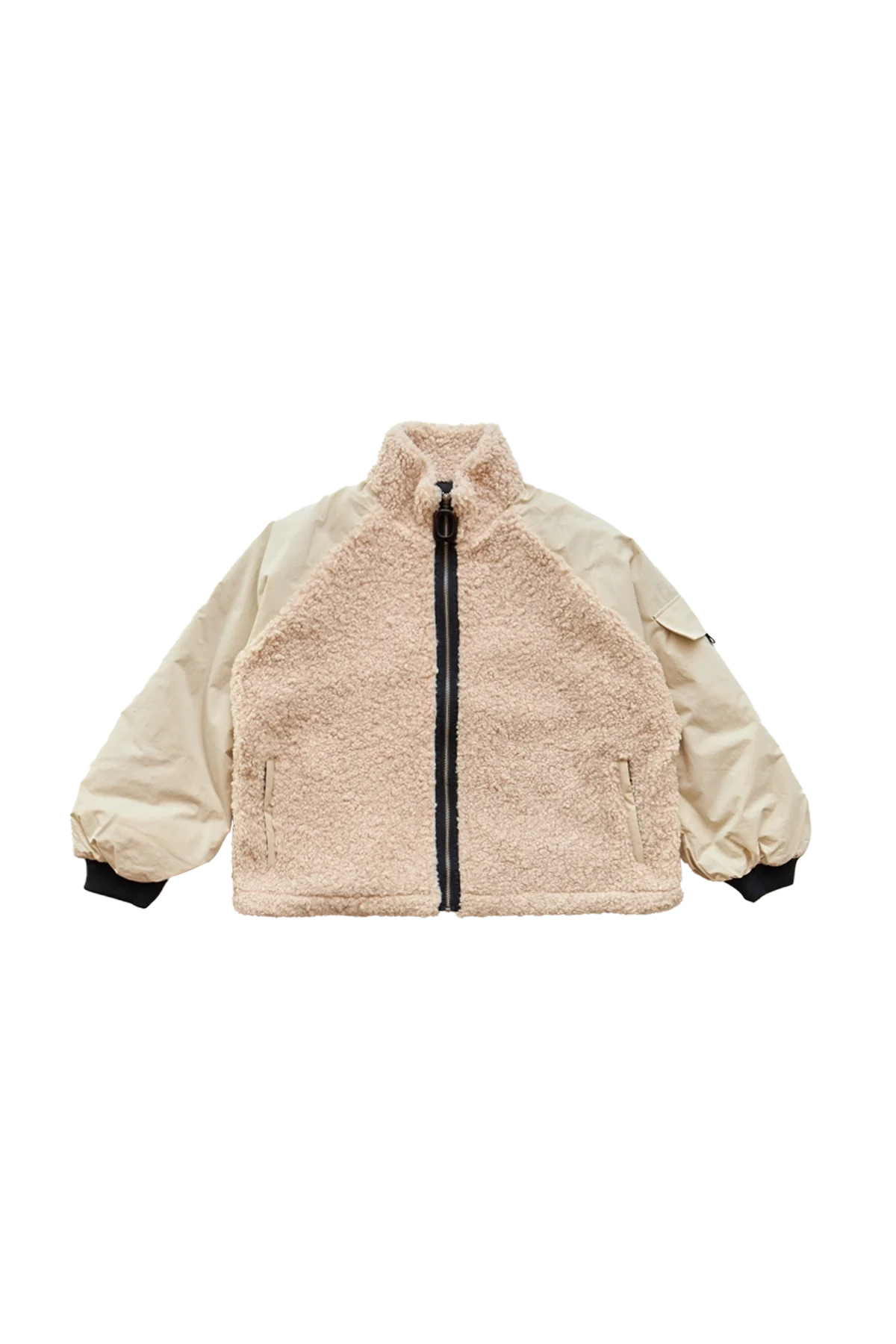 JW Anderson Color Block Track Top featuring a relaxed fit, high neck with signature square pull, raglan sleeves, leather logo patch on back, and flap pocket on sleeve. DETAILS - Mid-weight fleece fabrication - Relaxed fit - Contrast paneling - High neckline - Padded raglan sleeves - Ribbed cuffs - Zip closure with black signature ring pull - Logo embossed patch on back - Flap pocket on left sleeve - Adjustable elasticated hem - Fully lined Sizing: - True to size Material: 84% Polyester / 16% Acrylic Made in China Product codes: - SKU: ESSX/JWA/SS25/JK0372PG1736132/natural/L - UPC: 5057543578119