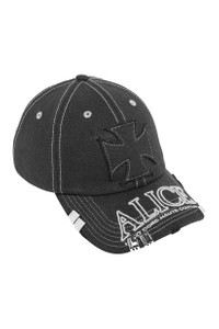 Ksubi X Alice Atelier Cap fuses streetwear grit with gothic sensibility. Cut in washed cotton twill, the design features high-contrast embroidery, punk motifs, and a structured crown that nods to both vintage athletic caps and dark avant-garde style. Subtle fading gives it an aged edge while retaining sharp silhouette. DETAILS Regular 6 panel cap Heavy denim fabric Semi structured crown Metal fastening closure at the back 4x4 cross embroidery Ksubi x alice t-boxed branding Ksubi x alice metal clips Ksubi x alice pocket tag No stretch Do not bleach. Do not tumble dry. Do not iron. Hand wash. Store flat to remain shape. Sizing: - True to size Material: 100% Cotton Product codes: - SKU: ESSX/KSU/AW25/MAH25HW001/Black/OS - UPC: 9358214383855