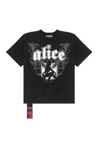 Ksubi X Alice Hollywood Graphic Tee is a part of the Ksubi by Alice Hollywood collaboration, merges vintage sleaze with street-ready edge. Crafted in washed black cotton, the shirt is emblazoned with bold gothic lettering, a central silhouetted figure, and baroque-inspired swirls, a clash of decadence and downtown grit that defines the capsule. Finished with Ksubi’s signature flag detail at the hem. DETAILS Black washed cotton jersey Front gothic “Alice” graphic with baroque swirls and central figure print Crewneck Short sleeves Signature Ksubi flag tag at hem Regular fit Material: 100% Cotton Product codes: - SKU: ESSX/KSU/AW25/MAH25TE001/Black/L - UPC: 9358214383671