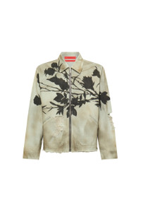 The Kusikohc Rose Denim Jacket featuring fading and heavy distressing throughout, a spread collar, floral graphic printed at the front and sleeves, welt side pockets, and adjustable cuffs. Unlined. DETAILS - Non-stretch denim - Fading + distressing throughout - Spread collar - Zip closure - Graphic printed at front + sleeves - Welt pockets - Press-stud fastening at cuffs - Unlined Sizing: - True to size Material: Cotton Made in China Product codes: - SKU: ESSX/KUS/SS25/KUS5JK725CNTR492808/Gray/S - UPC: 7000000031618