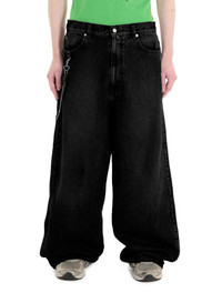 LU'U DAN Side Zip Jeans in non-stretch denim featuring a relaxed voluminous silhouette, five-pocket styling, loop at front pocket, two-way zip expansion panel at sides, logo patch at back waistband, and logo-engraved silver-tone hardware. DETAILS - Non-stretch denim - Relaxed voluminous silhouette - Five-pocket styling - Loop at front pocket - Zip-fly - Belt loops - Two-way zip expansion panel at outseams - Logo patch at back waistband - Logo-engraved silver-tone hardware Sizing: - True to size Material: 100% Cotton Made in Italy Product codes: - SKU: ESSX/MP059D_WD/BLACK/30 - UPC: 990003715172