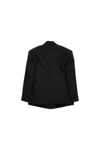 The Lu'u Dan Virgin Wool Blend Misfit Blazer in a barathea fabrication features a structured oversized silhouette with padded drop shoulders, notched lapel, welt pockets, front darts, button closure, and central vent at back hem. Full satin lining. DETAILS - Virgin wool-blend barathea - Oversized silhouette - Notched lapel - Padded structured drop shoulders - Welt pockets - Darts at front - Logo-engraved button closure - Four-button surgeon's cuffs - Central vent at back hem - Full satin lining Sizing: - True to size Material: 53% Polyester / 47% Virgin Wool Lining: 100% Viscose Made in Italy Product codes: - SKU: ESSX/LUD/SS25/MJ061WLWB/gray/46 - UPC: 1403558029384