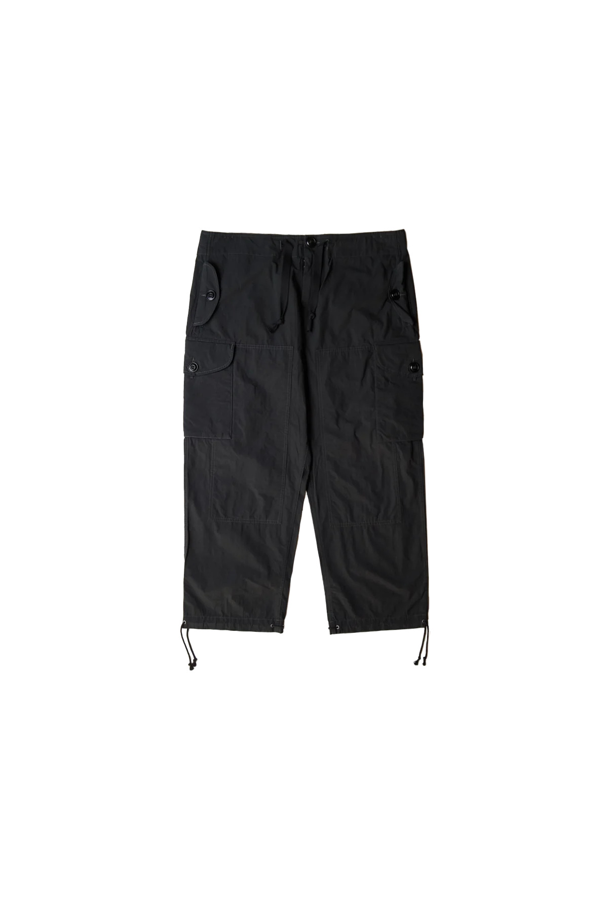 The Maison Margiela Cargo Pants in a lightweight technical twill with a relaxed-fit, side pockets, cargo pockets at the leg, drawstring at the waist and legs, reinforced panels at the leg and rear, and signature four-stitch logo at back. DETAILS - Lightweight - Relaxed-fit - Side pockets - Cargo pockets at leg - Drawstring at waist + legs - Reinforced panels at leg + rear - Four-stitch logo at rear Sizing: - True to size Material: 50% Cotton / 50% Nylon Made in Italy Product codes: - SKU: ESSX/MAS/SS25/S50KA0670M35289900/black/46 - UPC: 8059039526182