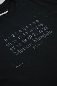 Maison Margiela Logo Stamp Tee in faded jersey with a rib-knit crewneck, faded logo printed at front, and signature white logo stitching at the back collar. DETAILS - Faded jersey - Rib-knit crewneck - Faded logo printed at front - White logo stitching at back collar Sizing: - True to size Material: Cotton Made in Italy Product codes: - SKU: ESSX/MAS/SS25/S51GC0534S24575969/black/S - UPC: 8059039471369