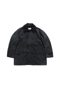 Maison Margiela Waxed Cotton Jacket with a long-line, contrast collar, flap pockets, and signature logo stitching at back. DETAILS - Double-breasted - Long-line - Contrast collar - Flap pockets - Logo stitching at back - Lined Sizing: - True to size Material: Cotton Made in Italy Product codes: - SKU: ESSX/MAS/SS25/S50AM0633M35282855/gray/48 - UPC: 8059039470409