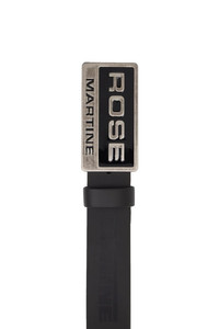 The Martine Rose Rubber Tyre Belt with a tonal logo graphic bonded at length and enameled logo plaque at antiqued silver-tone post-stud fastening buckle. Width: 1.25" DETAILS - Durable rubber construction - Adjustable fit - Silver-tone buckle closure - Martine Rose logo at buckle + belt length Sizing: - True to size Material: Rubber with Metal Buckle Made in Belgium Product codes: - SKU: ESSX/MAR/SS25/1182WF02001/Black/OS - UPC: 1403558036900