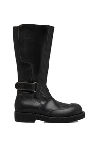 Rooted in classic motorcycle styling, these boots are constructed with a structured shaft, reinforced panelling, and an ankle strap detail. The high-shine finish adds a polished edge to the rugged silhouette, while the signature white stitch line highlights their MM6 identity. DETAILS Motorcycle boots in leather-effect finish Structured shaft with reinforced panelling Velcro ankle strap detail Round toe Flat sole White stitch line at the back Material: TBC Made in Italy Product codes: - SKU: ESSX/MM6/AW25/SH3WW0006P7431T8013/Black/40 - UPC: 8059039811882