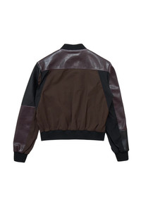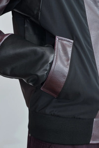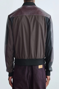 leather-paneled bomber jacket