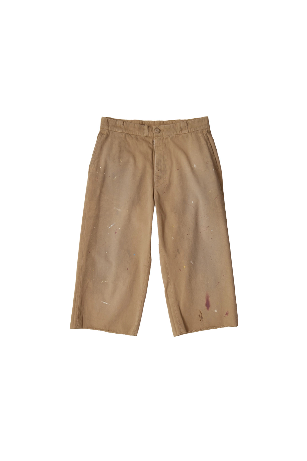 MM6 Paint Splatter Skater Shorts with a relaxed-fit, long length, side pockets, back buttoned pocket, signature white logo stitch at back waistband, and raw edged hem. DETAILS - Relaxed-fit - Bermuda length - Concealed front button, hook + zip fastening - Two side inset pockets - Rear button-fastening pocket - Raw edge hem - White logo stitch at back Sizing: - True to size Material: Cotton Made in Italy Product codes: - SKU: ESSX/MM6/SS25/SH2MU0011M35435124/Natural/46 - UPC: 8059039576804