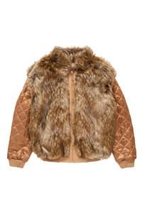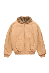 DETAILS - Reversible bomber jacket - Twill with faux fur collar + lining - Zip-front - Embroidered logo at chest - Utility pocket on sleeve - Welt pockets at front - Rib-knit trim Sizing: - True to size Material: Cotton Faux-Fur: 80% Acrylic / 20% Polyester Lining: 100% Viscose-Rayon Made in Italy Product codes: - SKU: ESSX/MM6/AW25/SH0AM0054S78548156/Natrual/46 - UPC: 8059039677006