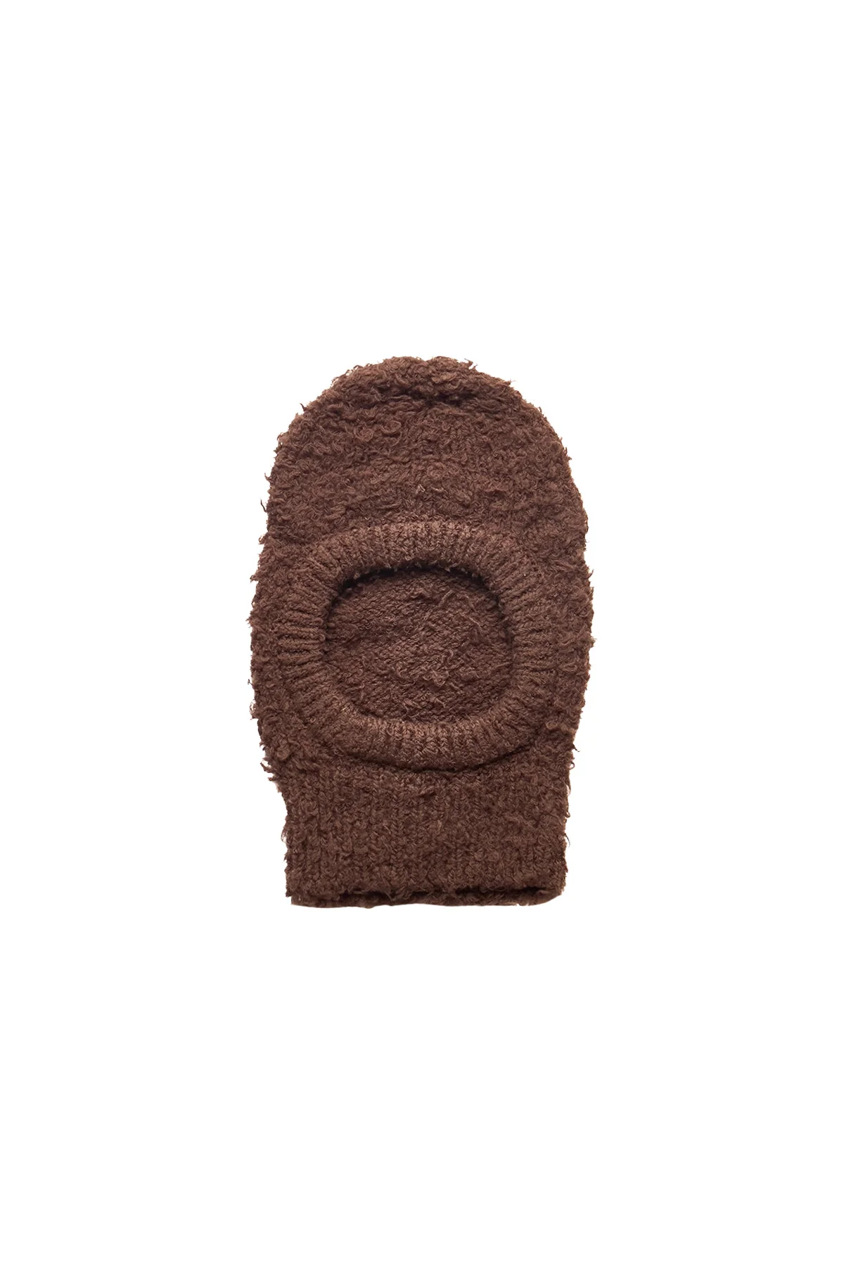 The Namacheko Furry Balaclava in Brown and Green in extra fine lightweight merino wool with a stretch knit featuring a thick ribbed opening at the face, a textured furry body, and a raw neck hem. DETAILS - Extra fine merino wool - Thick ribbed opening at face - Textured furry body - Raw neck hem Material: Merino Wool Made in Belgium Product codes: - SKU: ESSX/NW24766060807979/BROWN/OS - UPC: 1403558015639