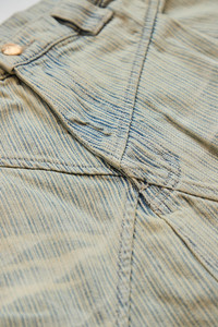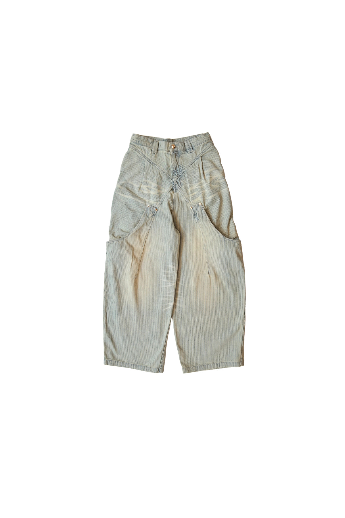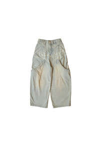 The Namesake Billie Bibs Light Denim Pants featuring a baggy relaxed-fit, full cropped leg, mid rise, pleated detail waistband, and four pocket styling. DETAILS - Lightweight denim - Relaxed fit through the leg - Contrast stitching throughout - Cropped leg - Mid-rise - Zip-fly - Belt loops - Pleated detail waistband - Hook + eye fastening at waist - Mother of pearl hardware - Four pocket styling - Logo patch at rear Sizing: - True to size Material: 100% Cotton Product codes: - SKU: ESSX/NMS/SS25/N3SS25N3PT04PI/Blue/S - UPC: 1403558044776