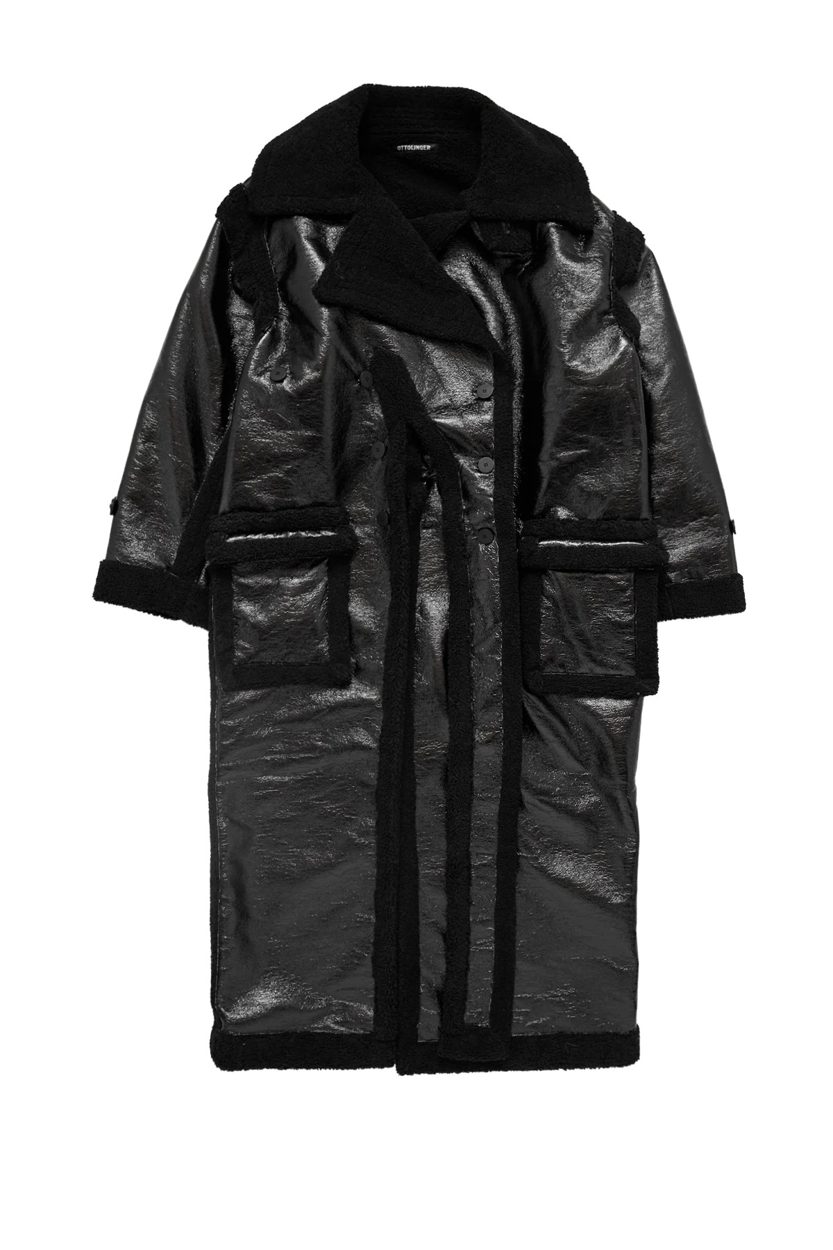 Ottolinger Shearling Oversize Split Coat features a dramatic split front hem, dropped shoulders, and an oversized silhouette that commands presence. Sherpa fleece trim and full fleece lining add warmth and texture, while adjustable button tabs at the cuffs and patch pockets balance utility with avant-garde flair. DETAILS Oversized cut with dropped shoulders Notched lapel collar Split at front hem for movement Adjustable button tab cuffs Sherpa fleece interior Sizing: - Runs large. Size down Product codes: - SKU: ESSX/OTT/AW25/10970230901/Black/L - UPC: 4255622758822