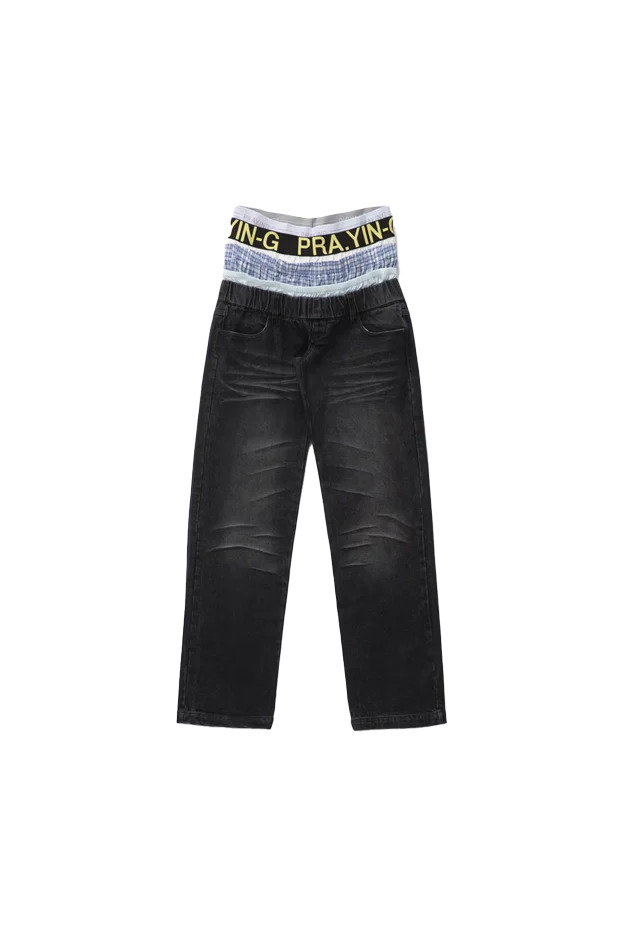 The Praying Boxer Jeans are layered pull-on jeans featuring multiple boxer-short inspired waistbands with logo print, an elasticated waist, and four-pocket styling. DETAILS - Layered styling - Pull-on pants - Logo at waist - Front + back pockets - Elasticated waistband Sizing: - True to size Material: Cotton Made in China Product codes: - SKU: ESSX/PRA/AW25/PRAY240857/Black/XS - UPC: 1403558052092