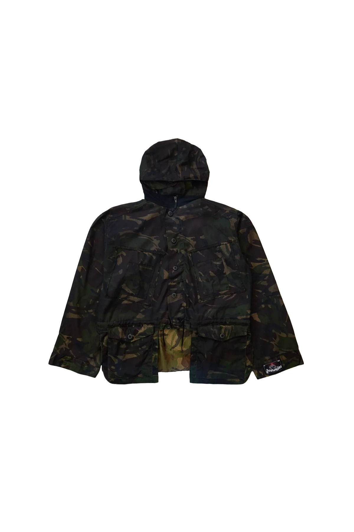 The Prototypes Overdyed Camo Parka is a lightweight upcycled and overdyed twill jacket featuring raw edges throughout, bungee-style drawstring and throat guard at the hood, dropped shoulders, pen slots at the chest, flap pockets, vented side seams, graphic patch at the sleeve, a logo patch at the cuff, and logo flag at the back collar.Please note coloration and finishings may vary. DETAILS - Size M is S-M, XL is L-XL - Upcycled + overdyed twill - Camouflage pattern - Raw edges throughout - Bungee-style drawstring + guard at hood - Concealed zip closure - Button placket - Pen slots at chest - Bungee-style drawstring at waist - Flap pockets - Vented side seams - Dropped shoulders - Graphic patch at sleeve - Logo patch at cuff - Adjustable tab at cuffs - Logo flag at back collar - Unlined Material: 100% Cotton Made in Italy Product codes: - SKU: ESSX/PRO/SS25/PT07OW03USBCA/Green/L-XL - UPC: 1403558041287