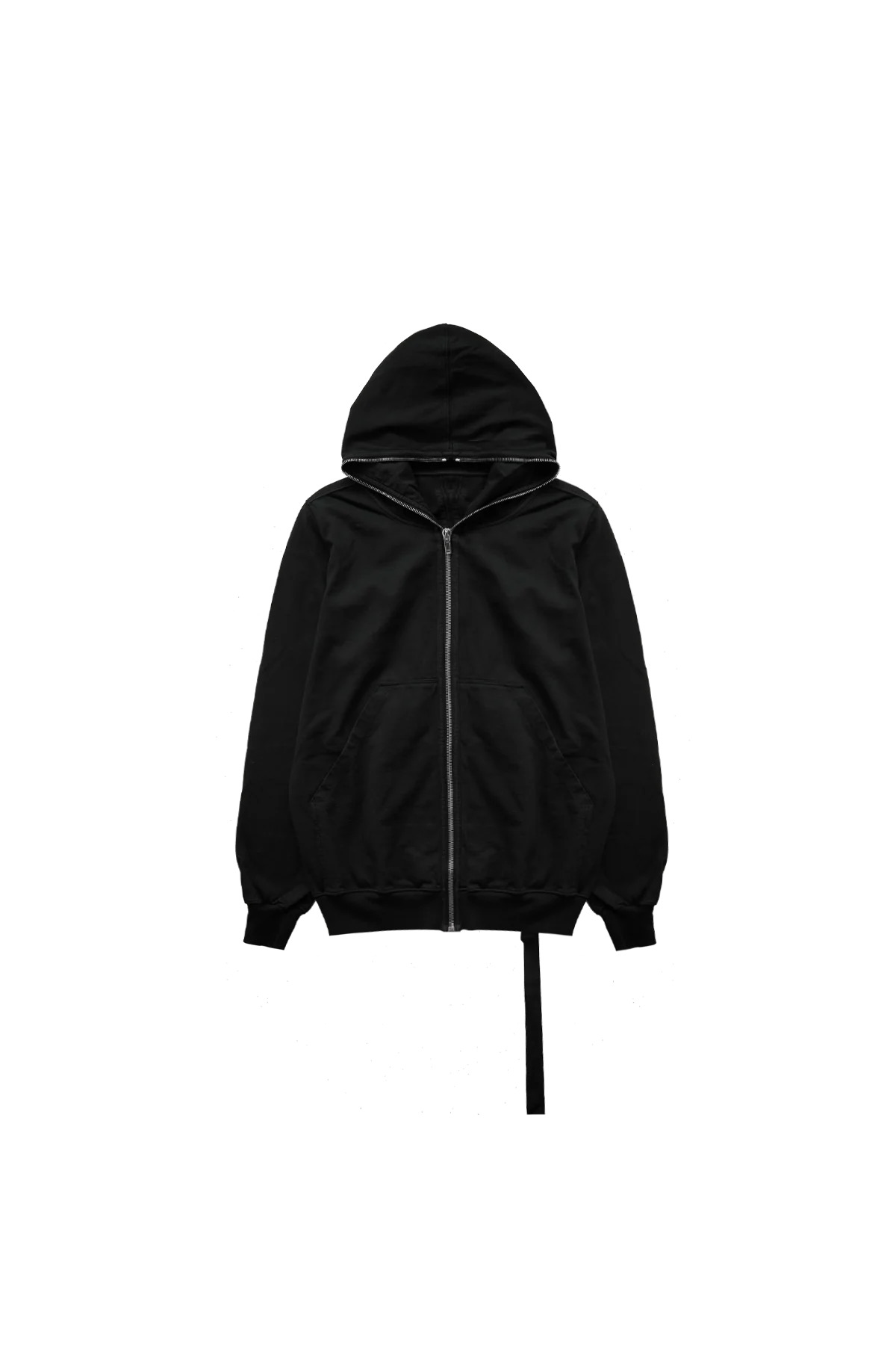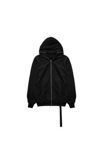 The Rick Owens Drkshdw Jumbo Gimp Zip Hoodie in organic fleece featuring signature silver-tone wrap-around zip closure along the front and hood, front pockets, dropped shoulders, ribbed cuffs and hem, and an elongated strap at the waistband with tonal logo branding. DETAILS - Fleece fabrication - Hooded - Wrap-around zip along front + hood - Front pockets - Dropped shoulders - Ribbed cuffs + hem - Branded strap at waist Sizing: - True to size Material: Organic Cotton Made in Italy Product codes: - SKU: ESSX/ROD/AW25/DU02E7283RIG/Black/S - UPC: 8052217929768