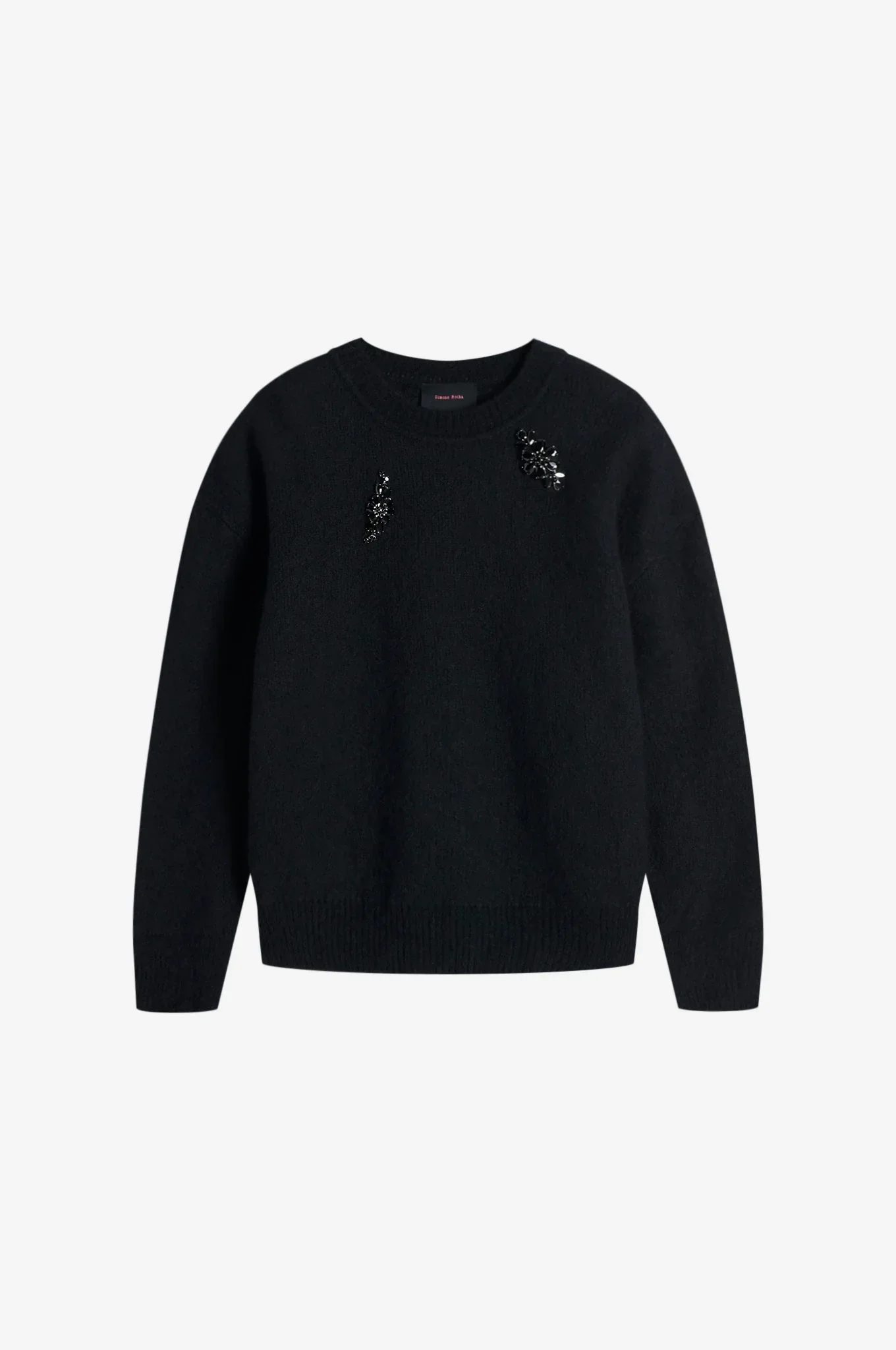 Simone Rocha Alpaca Knit Relaxed Jumper W/ Turbo Embroidery Black