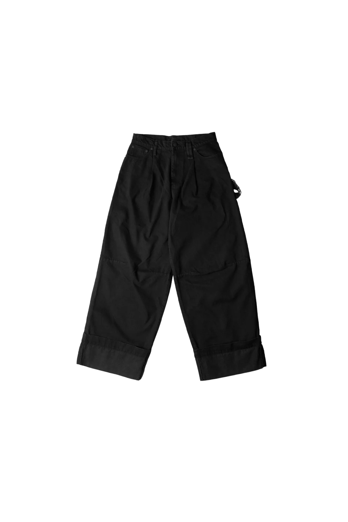 The Simone Rocha Wide Leg Puddle Denim Jeans with a relaxed-fit, pleated front, rolled cuffs, a crystal embellished logo patch at the back waistband, and tonal crystal covered hammer loop. This item is final sale and is not eligible for return or exchange. DETAILS - Non-stretch denim - Relaxed-fit - Wide-leg - Five-pocket styling - Pleats at front - Zip fly - Belt loops - Rolled cuffs - Crystal logo patch at back waistband - Crystals at hammer loop - Contrast stitching in white Sizing: - True to size Material: Cotton Made in Portugal Product codes: - SKU: ESSX/SIM/SS25/4131B1239/Black/S - UPC: 5391547911078