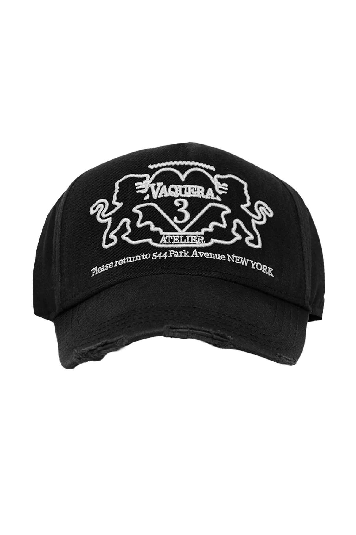 The Vaquera Baseball Cap in twill featuring an embroidered motif at the face, distressing at the peak, and a pre-curved brim. DETAILS - Twill fabrication - Pre-curved brim - 5-panel construction - Embroidered motif at face - Distressing at peak - Adjustable strap at back Sizing: - True to size Material: 100% Cotton Made in China Product codes: - SKU: ESSX/VAQ/AW25/VAQ10K200/Black/OS - UPC: 3607936557034