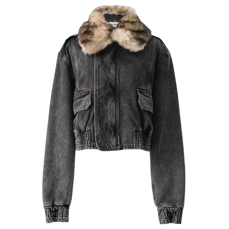 VAQUERA Women Denim Bomber Jacket Woven Black
