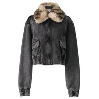 cropped denim bomber jacket