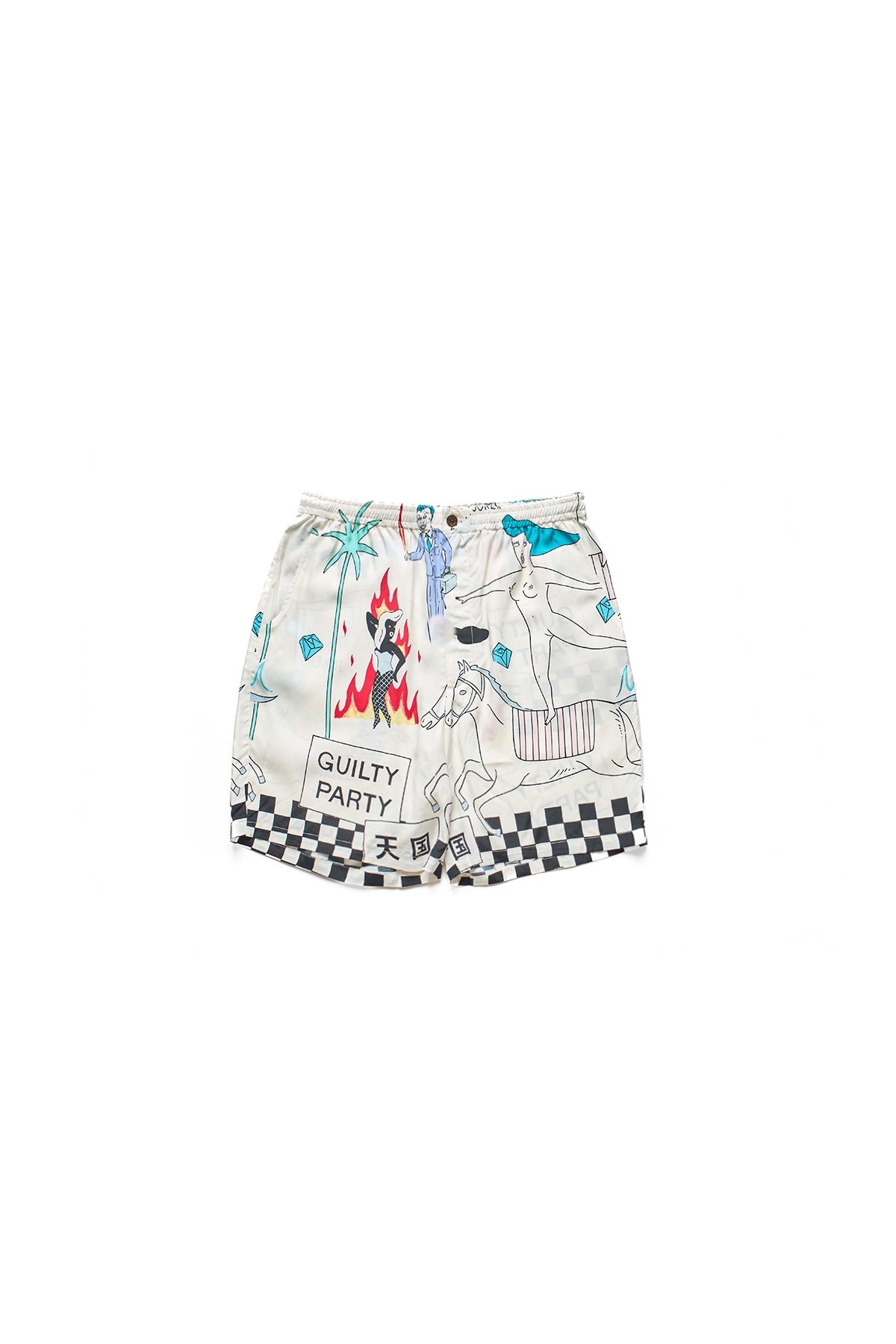 The Wacko Maria Hawaiian Shorts featuring a graphic all-over print, side pockets, back buttoned patch pocket, and elasticated waist. This item is final sale and is not eligible for return or exchange. DETAILS - Lightweight - All-over print - Side pockets - Back patch pocket - Button + zip closure - Elasticated waist Sizing: - True to size Material: Rayon Made in Japan Product codes: - SKU: ESSX/WAC/24SSWMPHI05/WHT/M - UPC: 2100001960445