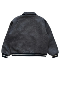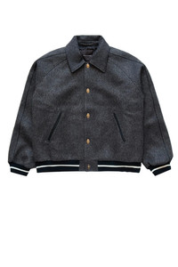 Wales Bonner Homecoming Varsity jacket in soft melange wool, designed for seasonal wear. Contrast ribbing defines the collar, cuffs, and hem. The structured fit balances classic varsity proportions with modern tailoring, making it an essential layer for transitional weather. Versatile and well-crafted, this piece works seamlessly across casual and elevated styling. True to size. DETAILS Closure: Snap-button front Pockets: Two side-slit pockets + interior pocket Material: 100% Wool Made in Portugal Product codes: - SKU: ESSX/WAL/AW25/MA25JA13WO02903/Gray/50 - UPC: 5056783025032