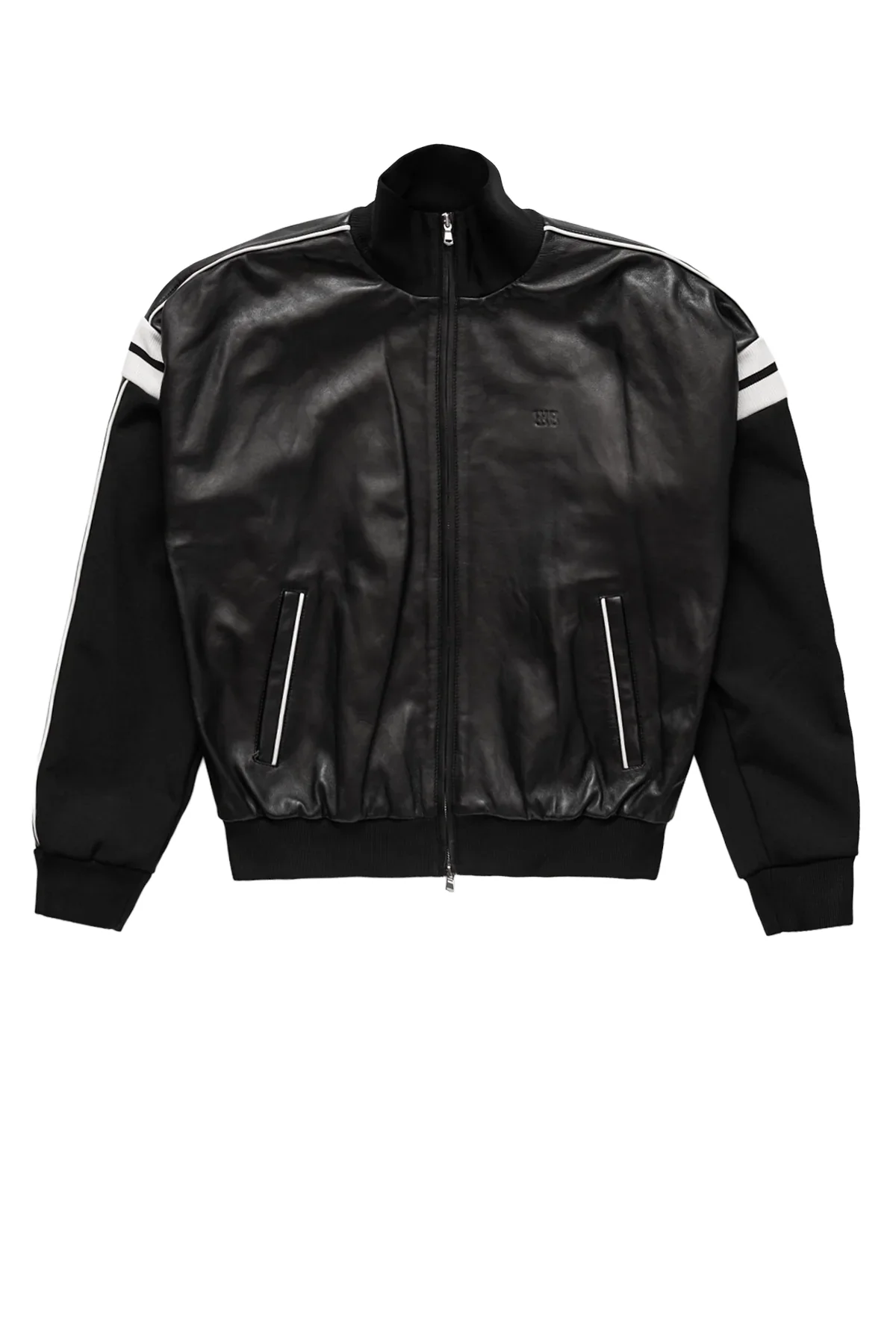 The Wales Bonner Nomad Leather Jacket combines sleek minimalism with functional design. This hybrid track top features panelling across the sleeves and back for enhanced movement and visual interest. The embossed logo adds subtle branding, while the double zip system offers versatile styling options, wear it fully closed for protection or partially unzipped for a relaxed look. Fits true to size. DETAILS Hybrid track top Panelling on sleeves and back Embossed logo Double zip Material: 100% Lamb Leather, Twill Made in Morocco Product codes: - SKU: ESSX/WAL/AW25/MA25LE04LE02999/Black/L - UPC: 5056783026282
