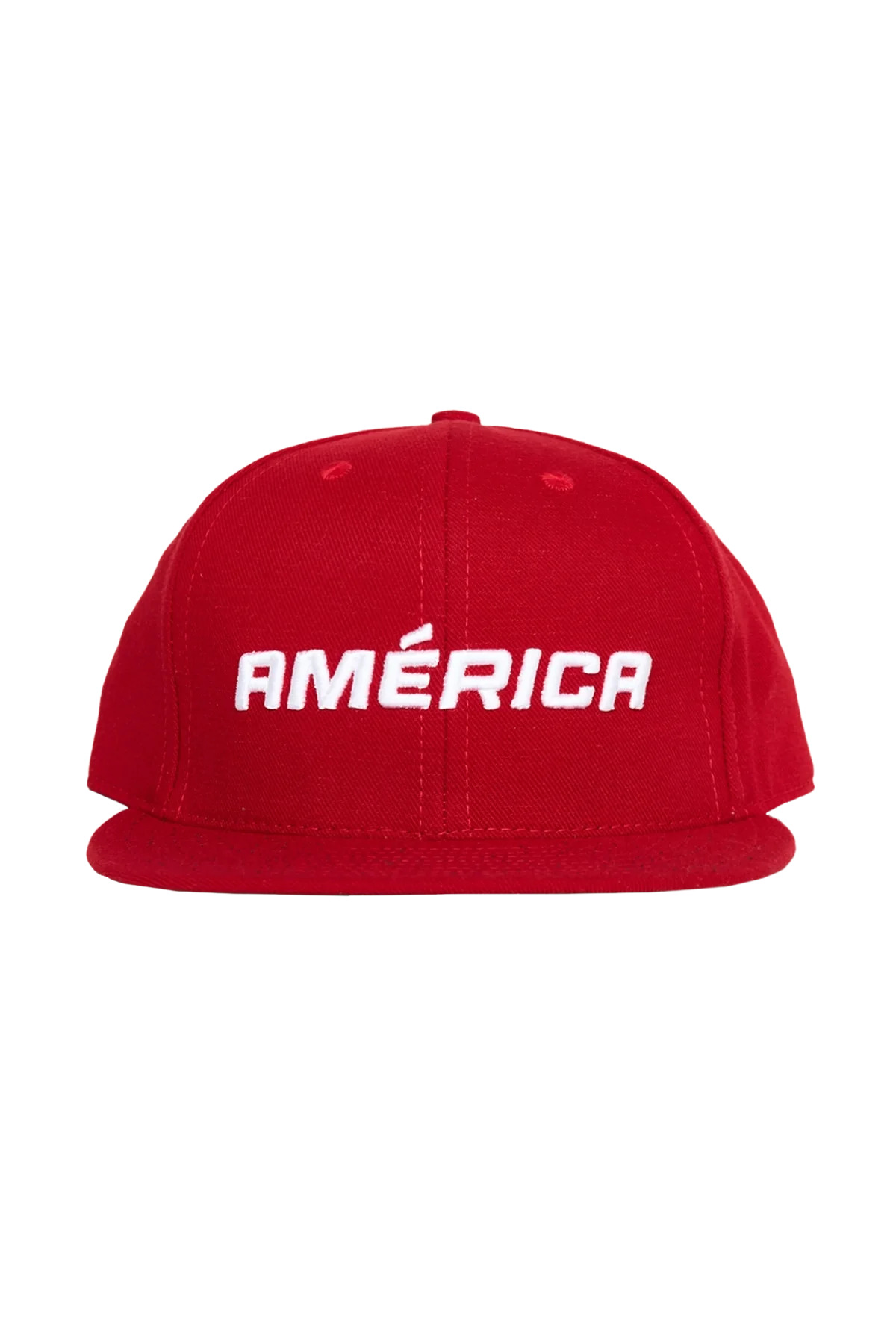 The Willy Chavarria America Cap featuring classic six-panel construction, an adjustable back, and embroidery throughout. DETAILS - Six-panel construction - Tonal Eyelets - Adjustable back - Embroidery throughout Material: Cotton Made in USA Product codes: - SKU: ESSX/WIL/SS25/WCASC0010006/Red/OS - UPC: 810176234723