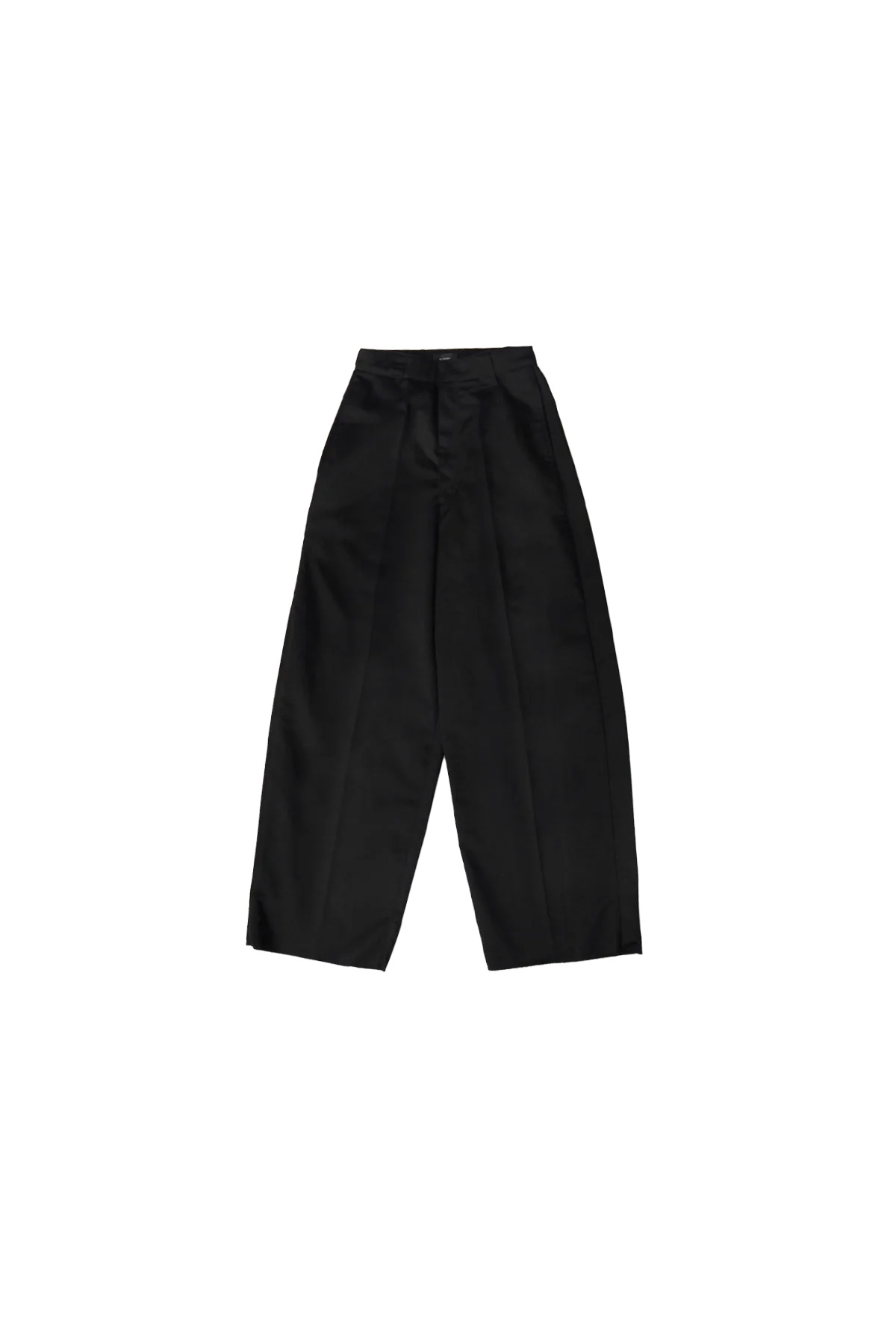 The Willy Chavarria Cholo Chino Trousers in lightweight twill featuring a wide-leg relaxed silhouette, creased-front, side pockets, and back pockets. DETAILS - Chino trousers - Crease-front - Wide-leg silhouette - Relaxed fit - Side seam pockets - Back welt pockets - Zip fly + button closure Sizing: - True to size Material: 65% Polyester / 35% Cotton Made in USA Product codes: - SKU: ESSX/WIL/SS25/WCBTM0024001/Black/30 - UPC: 810176236246