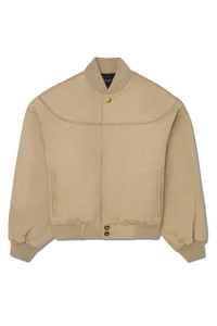 Willy Chavarria Gas Station Bomber features hallmark details like ribbed collar, cuffs, and waistband, along with bold “kissing” piping across the shoulders. Quilted lining keeps it warm, while branded faux-horn buttons, slanted welt pockets, and an oversized slouched fit bring modern sensibility to a classic form. DETAILS Ribbed collar, cuffs, and waistband Kissing shoulder piping detail Quilted interior lining Center-front closure with branded faux-horn buttons Slanted welt waist pockets Oversized, slouched silhouette Material: 65% Polyester, 35% Cotton; Lining 1: 100% Cotton; Lining 2: 100% Viscose - Made in Italy Product codes: - SKU: ESSX/WIL/AW25/WCOUT0008019/Natrual/L - UPC: 840499905796