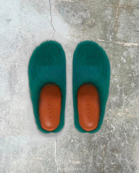 SEA GREEN LONG-HAIR CALFSKIN FUSSBETT SABOT
