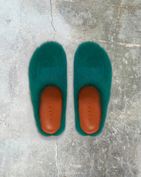 Calf-hair slip-on loafers in Green. · Logo-embossed leather footbed · Buffed calfskin lining in black · Treaded rubber sole Supplier color: Black Upper: calfskin. Sole: rubber. Made in Italy.