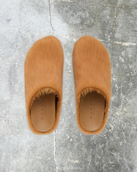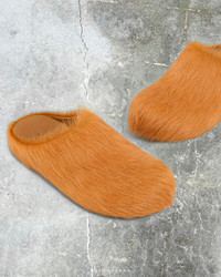 Calf-hair slip-on loafers in Orange. · Logo-embossed leather footbed · Buffed calfskin lining in black · Treaded rubber sole Supplier color: Black Upper: calfskin. Sole: rubber. Made in Italy.