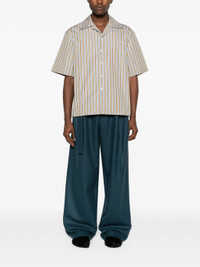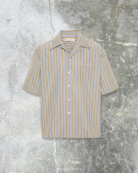 grey/multicolour cotton poplin texture vertical stripe pattern embroidered logo at the chest camp collar front button fastening short sleeves chest patch pocket straight hem Composition Cotton 100%