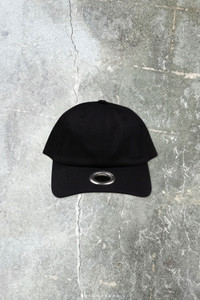 Black Ring Cap Cotton twill cap in black. · Embroidered eyelets at crown · Logo-engraved O-ring at curved brim · Logo-embroidered velcro strap Supplier color: Black 100% cotton. Made in China.