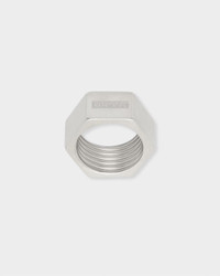 Silver Thick Nut Ring Graphic band ring silver-tone brass. Logo engraved at face. Supplier color: Silver Brass. Made in Italy.