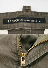 Disciple Motorcyclist Leather Trim Biker Style Cargo Pants Made in Japan Biker style cargo pants with cow leather trim on zipper back of the leg 📌DM me for best offer@buy it now "A506" 🎈KINDLY READ & UNDERSTAND DESCRIPTION BELOW B4 BUYING 📌 size on tag: 4 material: cotton, cow leather-trim made: Japan MANUAL MEASUREMENTS (approximately):- Waist: 15.5"(31") Length : 41" Inseam: 32.25" Front Rise: 9" Thigh : 11.5"(23") Knee: 8"(16") Leg Opening: 7"(14") CONDITION: - Used but in good condition. Might have sign of worn. Please do not expect it to be like new or in pristine condition. See our listing pictures for full details and description of any imperfections. 📌THE COLOUR MAY BE VARIED DUE TO PIXEL AND LIGHTING EFFECT. 💥ALL SALES ARE FINAL... FOR FURTHER QUESTIONS, DON'T HESITATE TO ASK Shipping 👉🏿The item buy over $ 130 and above will be shipped by DHL Express it take 4 - 9 working days to reached. 👉🏿The item buy below $ 130 will be shipped by Malaysia National Courier it take 14-21 working days to reached. 💥 Shipping processed will take 1-3 working days after the payment are cleared 😎BUY WITH CONFIDENCE Shipment method comes with tracking numbers. ***FOR DELIVERY USE,PLEASE LEAVE YOUR PHONE NO. AND DETAILS AFTER PURCHASED THE ITEM. ‼️ No return, exchange or refunds. All sales are final. Once an item has shipped,it is no longer my responsibility 💲Accept payment : PayPal ONLY ^_^ THANK YOU SO MUCH ^_^
