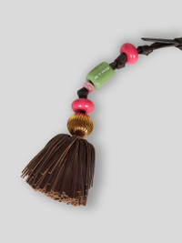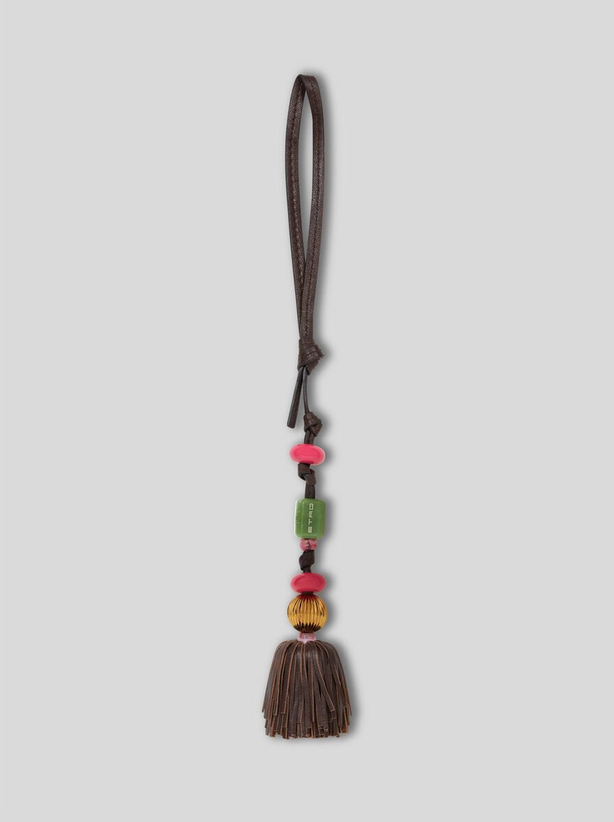 Leather charm with colourful beads and small tassel, embellished with the printed ETRO logo. This accessory is perfect for attaching to bags and designed to highlight the brand’s DNA. • Made in Italy • Dimensions (Height): 9.6 inches (24,5 cm) PRODUCT DETAILS • 100% leather • Details: 100% plastic