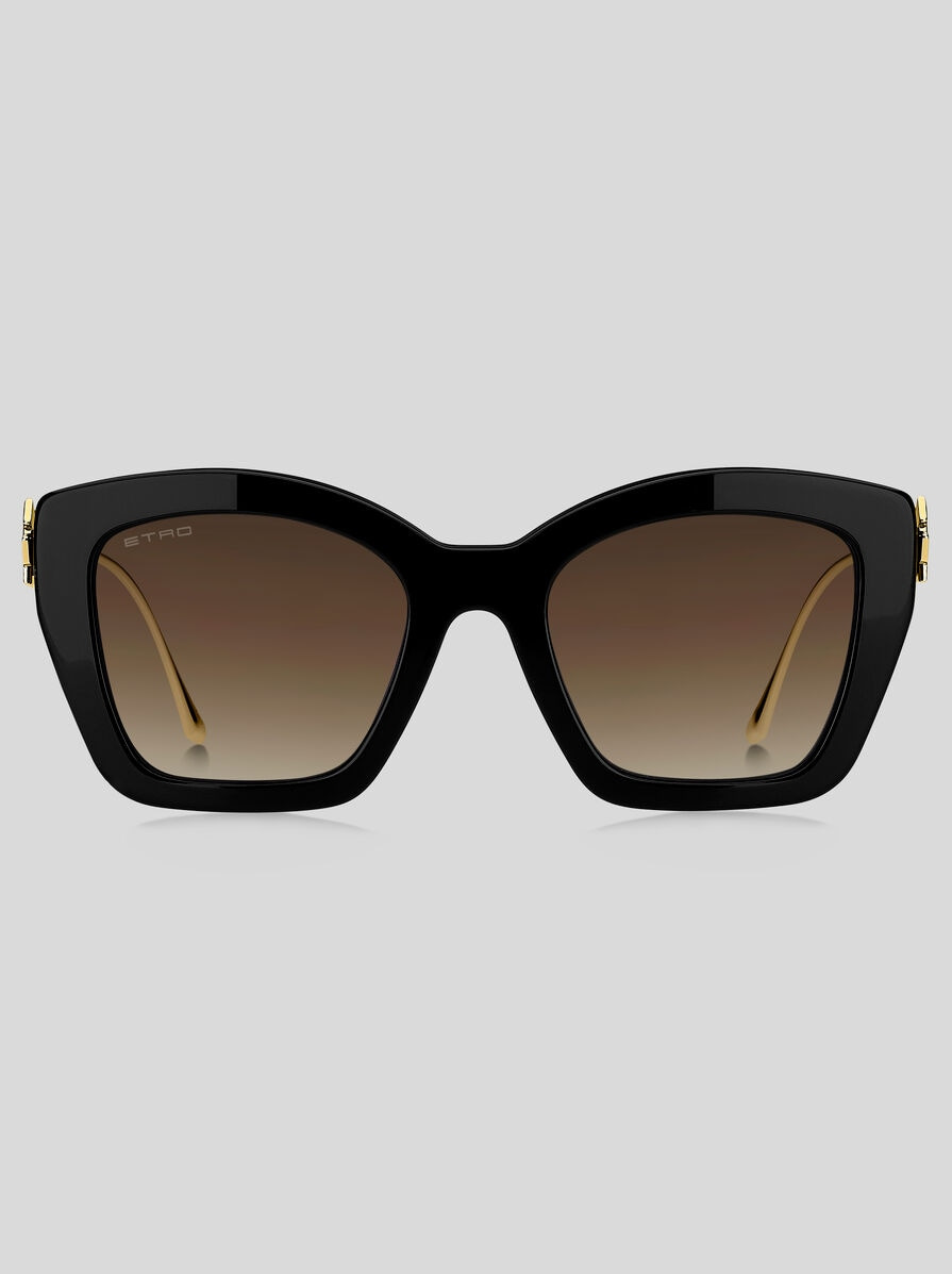 Otherworldly and futuristic themes combine in ETRO's "Bold Pegaso" eyewear line – a tribute to the mythological Pegasus. Meant to turn every look into a fashion statement, these sunglasses feature a bevelled acetate front and ultra-glamorous metal temples, decorated with ETRO's intricate floral pattern and sealed with luxurious lacquer for a jewellery-inspired finish. The iconic end tips and logo lettering on the tinted lenses lend them an unmistakable touch of elegance. • Lenses with UVA and UVB protection • Fitting: Global fitting • Lenses: 1.79 inches ( 45,5 mm) , bridge: 0.87 inches (22 mm), temples: 5.51 inches (140 mm) • Made in Italy PRODUCT DETAILS • Frame: 100% acetate