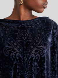 Poncho in burnout silk-blend velvet with hanky hem. This garment features an abstract motif with Paisley detailing and is finished with light see-through-effect edging. • Boat neck • Made in Italy PRODUCT DETAILS • 50% silk, 50% viscose