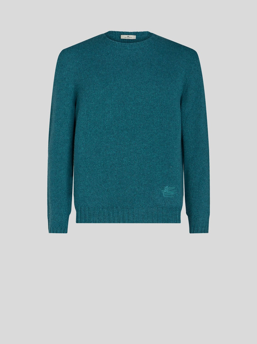 Cashmere jumper featuring logo with Pegaso at the bottom. • Regular fit • Round neck • Ribbed borders • The model is 74.01" (188 cm) tall and wears size M (IT) • Made in Italy PRODUCT DETAILS • 100% cashmere